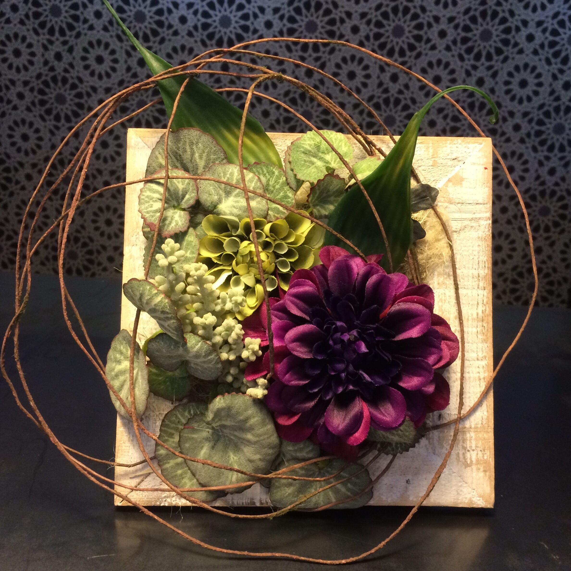 アンティーク風のウッドボックスにpurple、greenのお花で妖艶に仕上げました。
