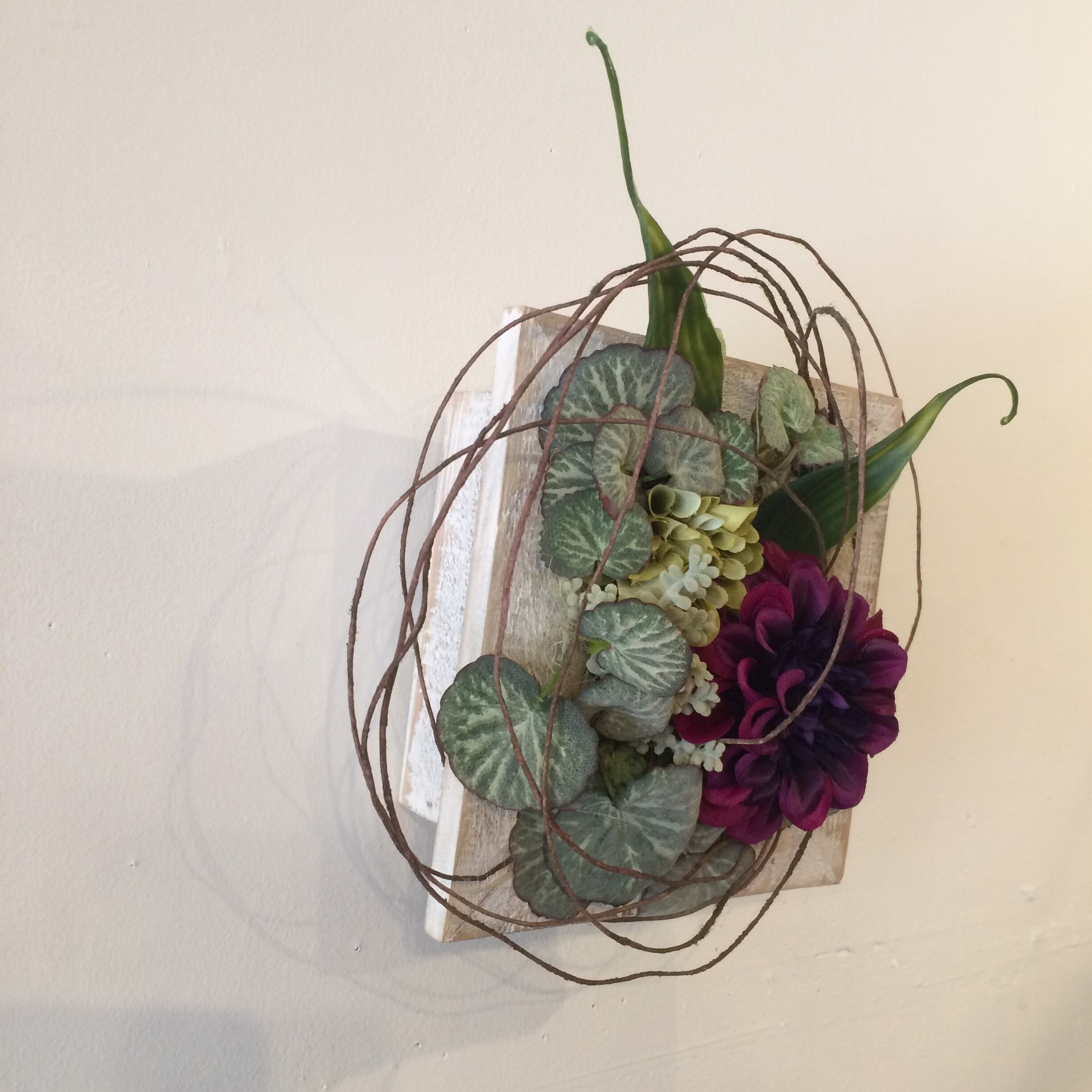 ◆COMMENT:アーティフィシャルフラワー(造花)で作る壁掛けです。